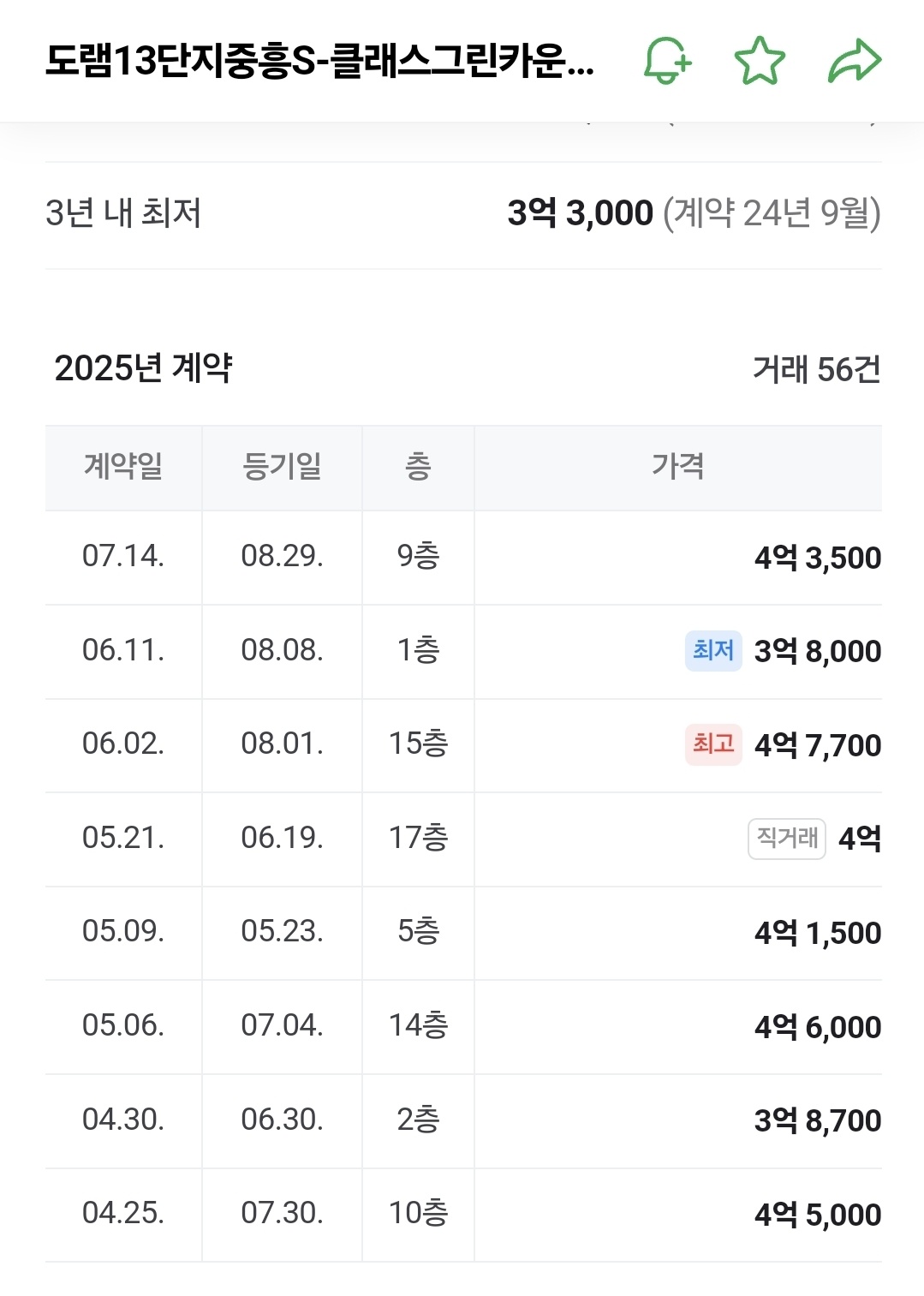 - 단지명: 도램마을 13단지 중흥S클래스그린카운티