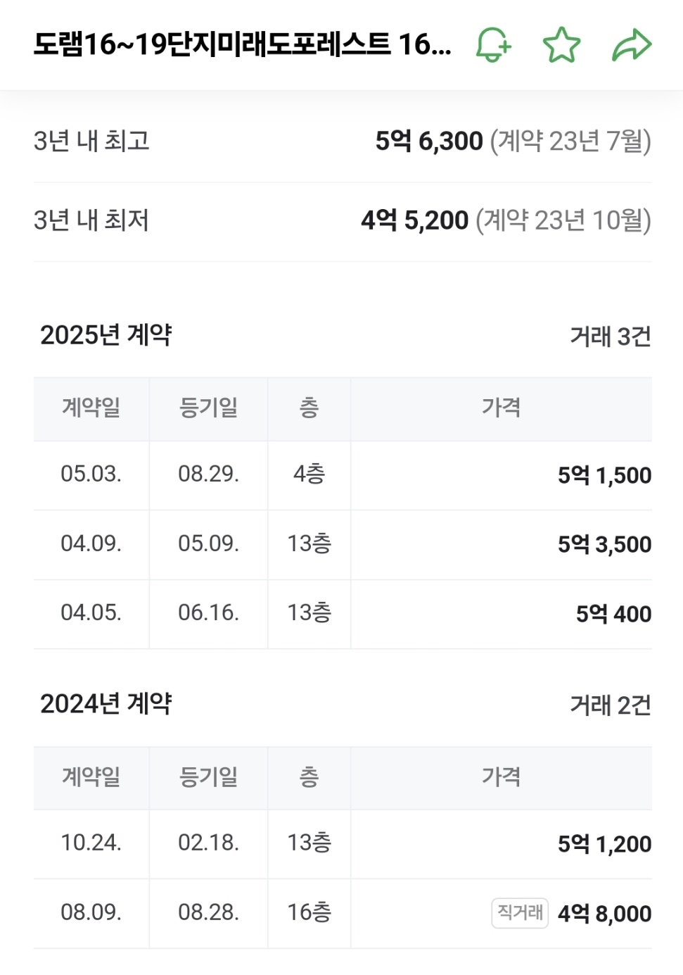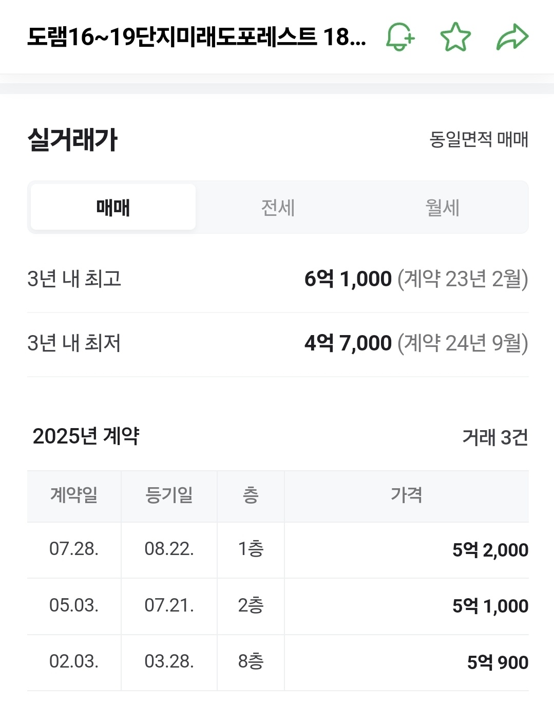 - 2025년 5월 3일: 84.9685㎡ (33평) ▶ 거래가 5억 1,500만 원