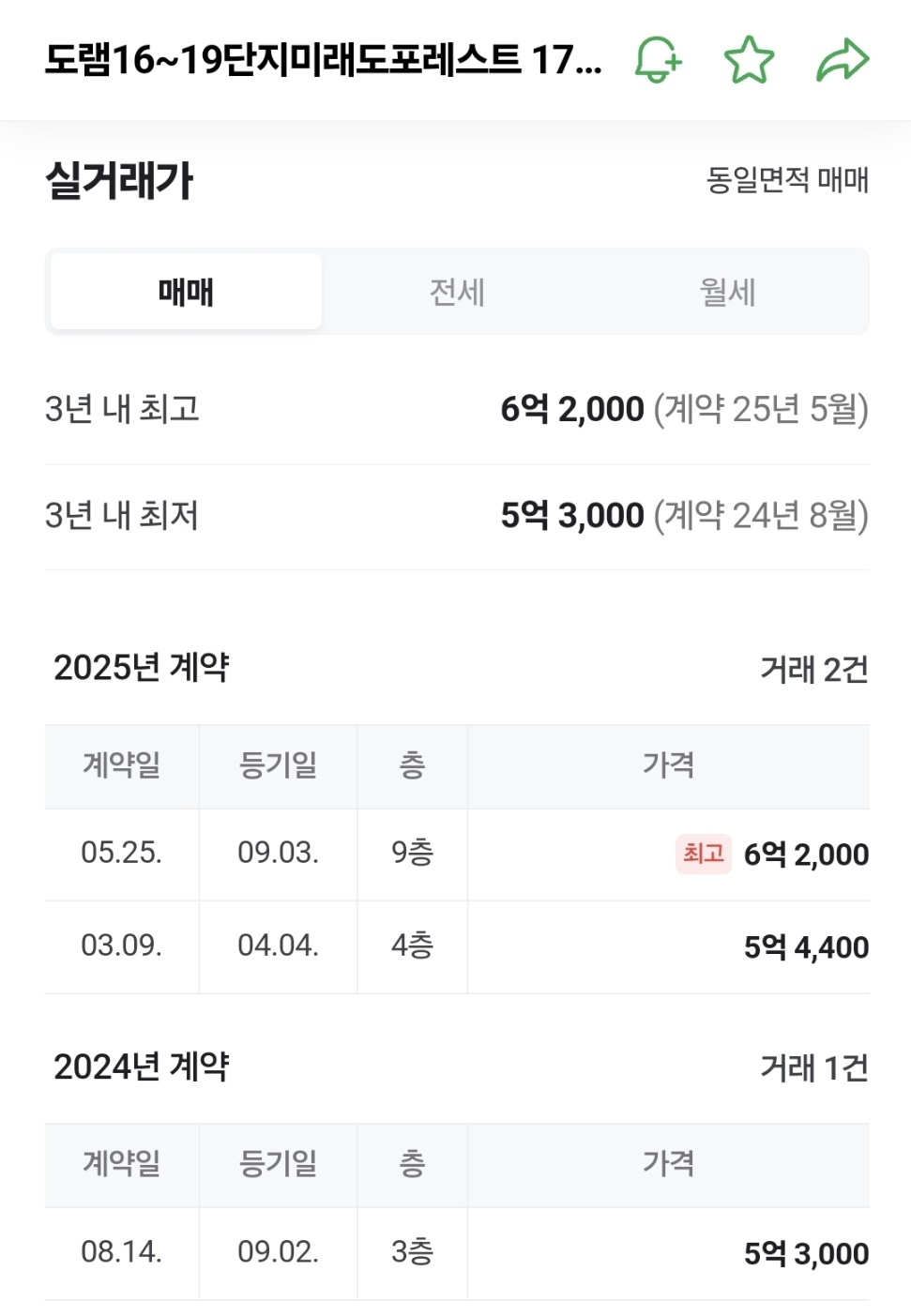 - 2025년 4월 9일: 같은 규모 ▶ 거래가 5억 3,500만 원