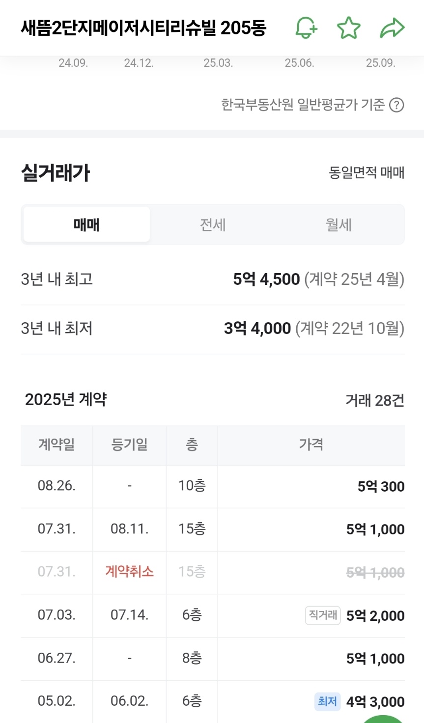 | 매매 | 2025-08-13 | 15층 | 120.51㎡ (약 36평) | ₩880,000,000 |