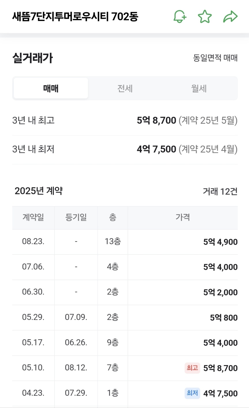 | 아파트 이름 | 새뜸마을7단지 투머로우시티 (새뜸7단지) |
