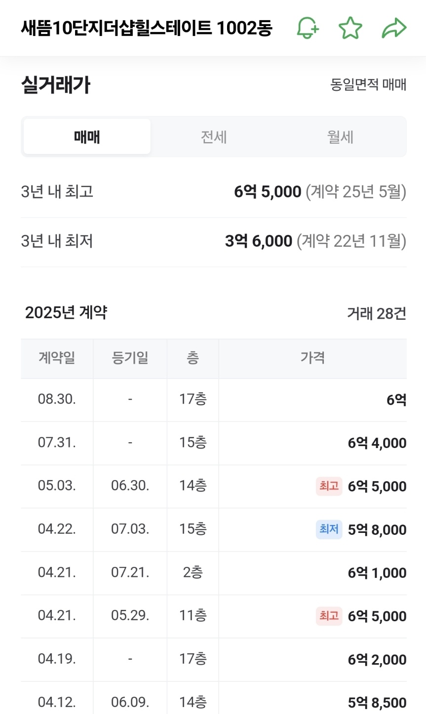 | 2025.08.30 | 87A형 | 17층 | 6억 원 |