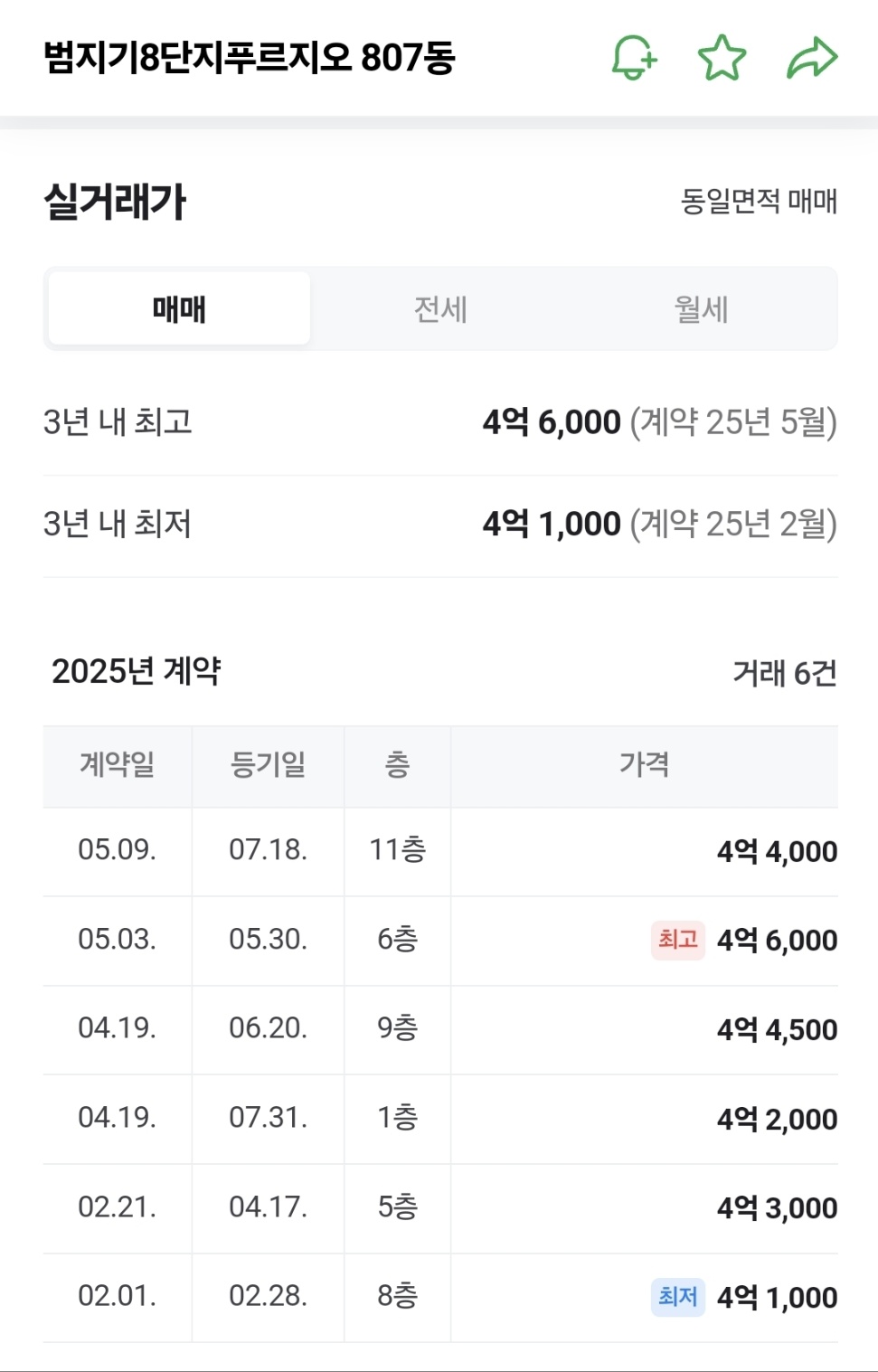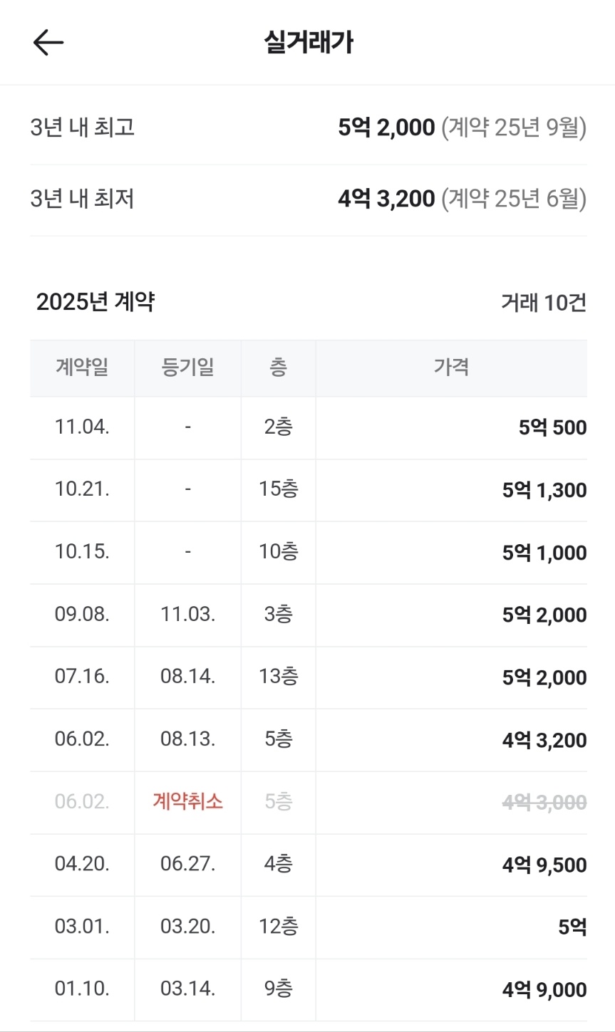 - 최근 매매 실거래가: 예컨대 99 m²(약 30평대) 기준 2025년 10월 매매가 약 5억 1천만원 선